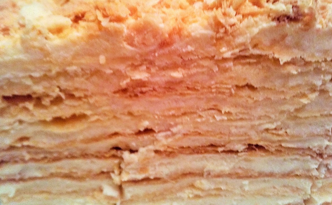 Nevaru teikt, ka šis ir izcilākais, līdz šim ēstais Napoleons, bet par nekam nederīgu to nosaukt arī nevaru. Gabals tiešām liels, mīklas kārtiņas daudz un var redzēt, ka mīkla ir plāna un iepriekš bijusi trausla, bet nu jau tā piesūkusies ar krēmu, sakarā ar ko kūciņa kļuvusi smagnēja, nokniebjot gabaliņu pat nedrūp, bet griežas kā tāda liela, blīva daudzkārtaina sviestmaize. Neskatoties uz to, garšai nebija ne vainas, lai gan prasījās arī kāda ogu vai ievārījuma kārtiņa krāsai un garšas niansei.